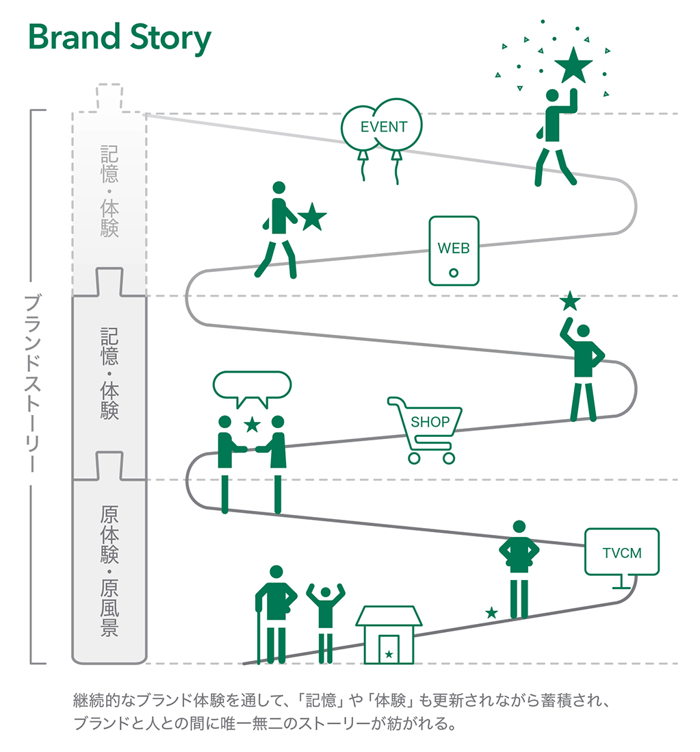 ブランドが時代や社会や人々の意識の変化に応じて、常に価値や振る舞いを更新し、新しい関係を結びなおす。その結果として紡がれる、ブランドとそのファンである人との歴史においてのみ存在するクローズドでパーソナルで、唯一無二の物語。それがブランドストーリーです。