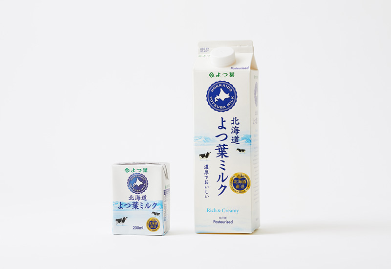 We printed “HOKKAIDO YOTSUBA MILK” on the Hokkaido emblem at the top to further strengthen the connection of “Yotsuba = Hokkaido”. We also created a new “Made in Hokkaido” emblem, to raise awareness that milk manufactured in Hokkaido was being directly exported to Singapore. Currently, the product is sold at well-known supermarkets in Singapore such as FairPrice and Cold Storage.