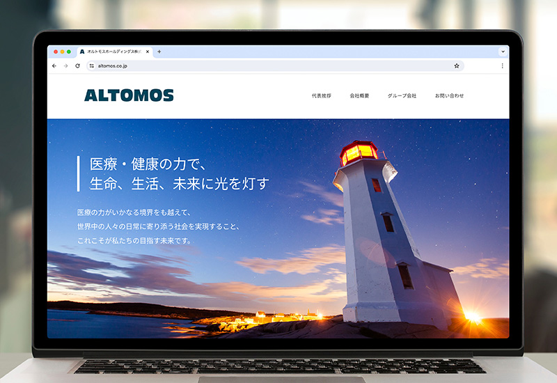 オルトモスのブランドロゴは、医療に携わる者としての高い使命感に突き動かされながら磨いた技術や蓄えた知識を、重厚感のあるタイポグラフィと深みのある濃紺によって表し、事業会社を支える頼もしい姿として表現しています。