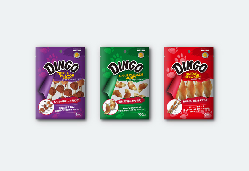 スペクトラム ブランズ ジャパン株式会社の依頼を受け、バニスターは、犬用おやつブランドDINGOの商品パッケージデザインを開発しました。
